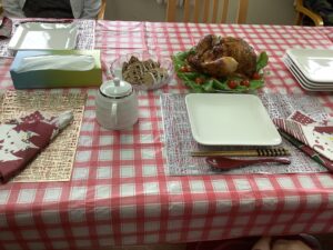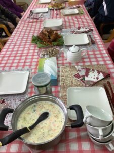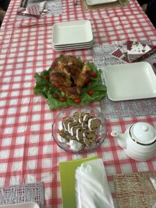 昼食には丸々1つチキンがあったり大きなピザ、他にもサラダやシュトーレン等沢山のメニューをご用意させていただきました。