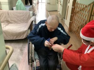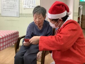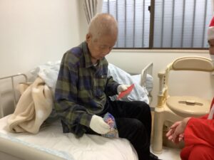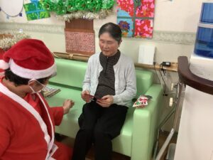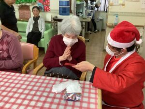 おやつ後にはサンタクロースからプレゼントとメッセージカードを受け取っておられました🎅