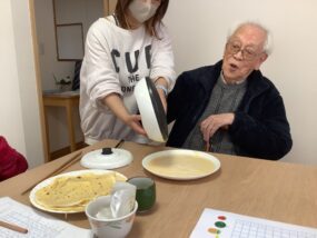 クレープ焼き器を使って皆さんでクレープ作り(*^-^*)