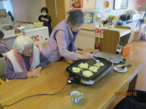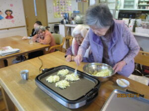 久しぶりのお好み焼き!しかも目の前のホットプレートで焼くので部屋中に美味しそうな匂いが充満して…