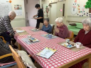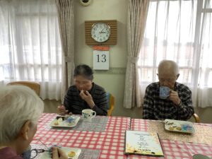 おやつもとても好評で「これ甘いね」「今日は何かの日かね?」ととても喜んで召し上がって下さいました。