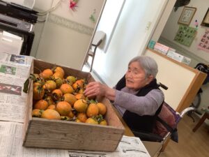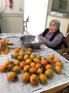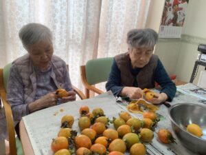 入居様の皆様が干し柿を作る作業を手伝ってくれました。