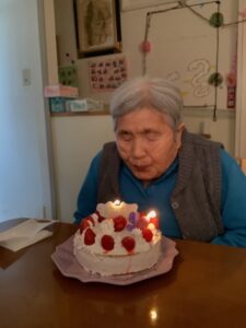 フーとろうそくの火を消されて、照れながらも一人一人に