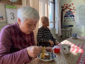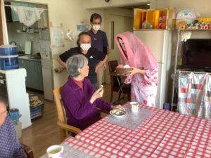 おやつにはスタッフが手作りのロールケーキを作って下さいました。