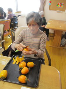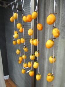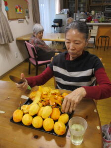 今日のおやつは芋羊羹と 先月干した干し柿です