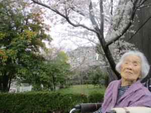 104歳のお花見です 綺麗な桜ですね