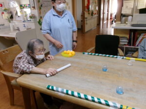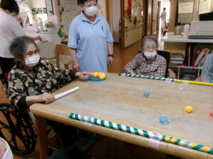 今度は、棒をつかってピンポン玉をはじきます!