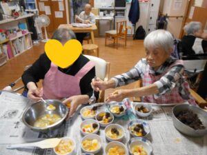 今月は、十五夜🌕にちなんで、白玉あんみつを作りました。