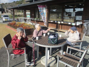 冬晴れの良き日に利用者様3名と車で少し遠出(道の駅のようなところへ)しました。