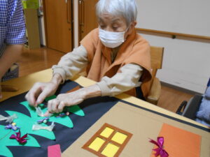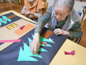 皆さんにも、ツリーの飾りつけや、壁飾り作りを手伝っていただいたきました。