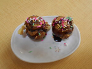 なんだか、たこ焼きにそっくりなチョコカステラの出来上がり❣皆さんと美味しくいただきました・