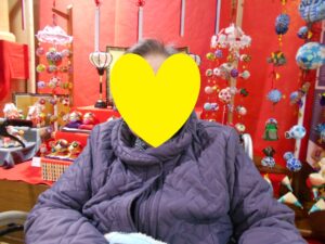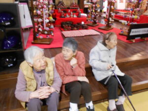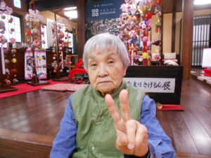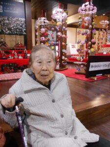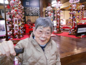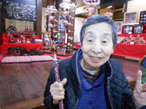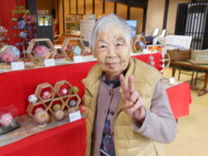 色とりどりに飾られた人形やまりなどの作品を見て、「すごいね。素敵だね~」と感心しておられました。