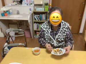 誕生日に皆さんでバースデーソング🎵を歌って、ケーキでお祝いをしました。