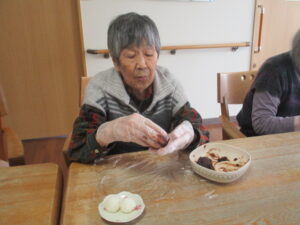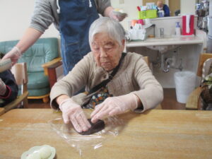 春の彼岸に合わせて、GH2階ユニットでは、恒例の”ぼた餅作り”を行いました。
