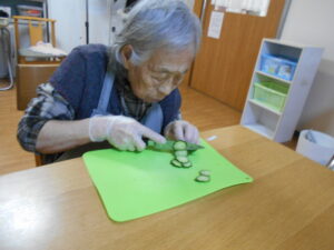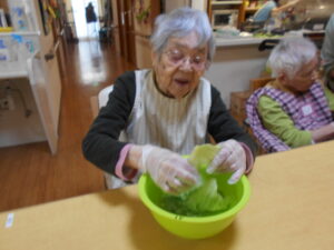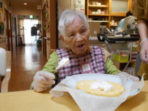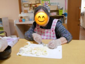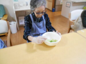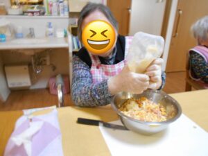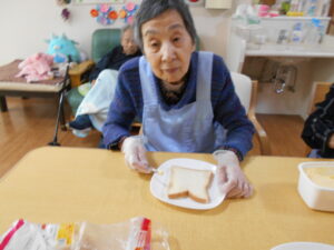 皆さんでお昼ご飯のサンドウィッチを作り、ケーキの準備をしました。