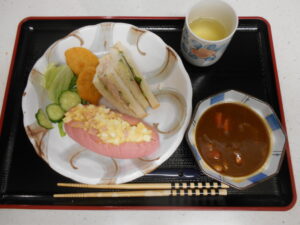 ハム・レタスサンドとシーチキンサンド。たまごのロールパン。