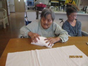 今日は「ダスタークロス(床掃除用のモップのカバー)たたみ」をお願いし、簡単に畳み方をお伝えすると・・・?