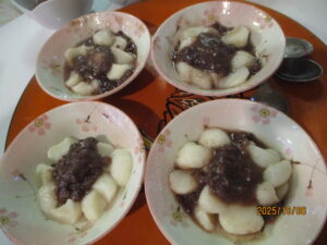 ホームでもおやつの時間に白玉粉を使って「ぜんざい」を作りました!