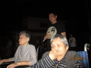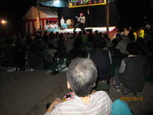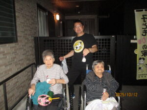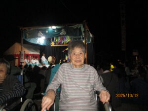 神楽の舞を背に記念撮影📸 肌寒くなってきていたのでホームへ・・・👩🦯👩🦽