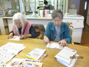 東ユニットの探索に出かけたこの日もお隣のO様と一緒に新聞紙畳みをしておられました🌟