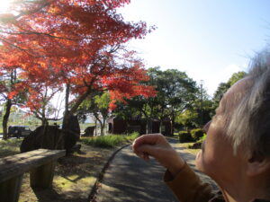 M様真剣な表情で紅葉を見ておられ「綺麗ですね」とお声がけさせていただくと「そうね、綺麗」と微笑まれました😄