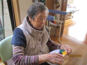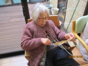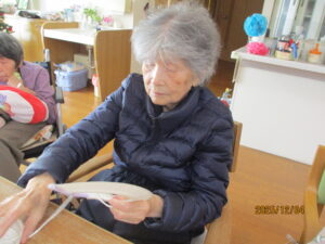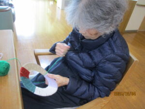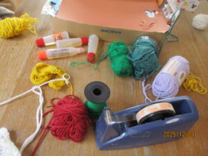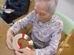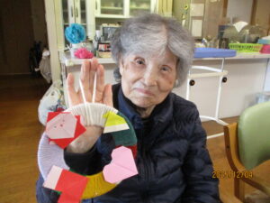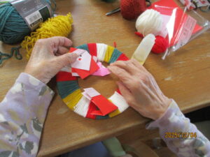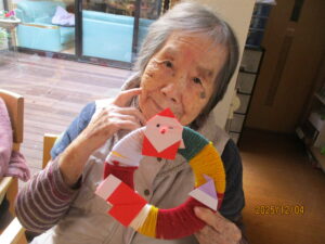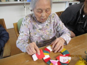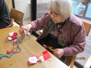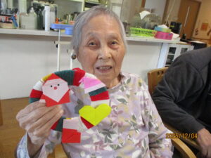 巻き終えたら・・・折り紙でサンタ🎅や靴下🧦・ハート💘を作り貼り付けます