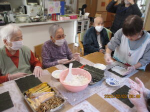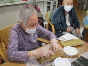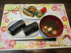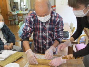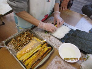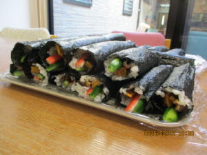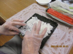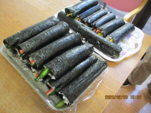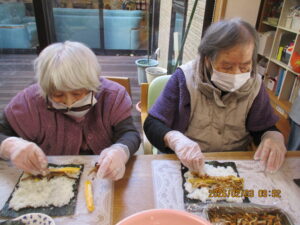 午前中はみんなで昼食用の巻き寿司作りです😊