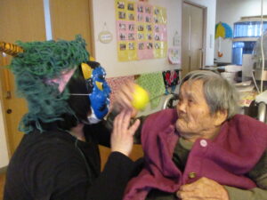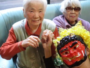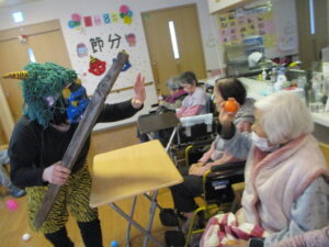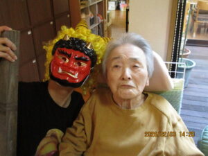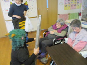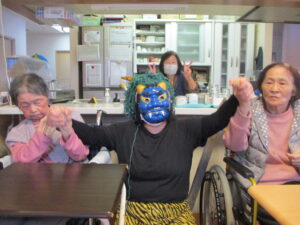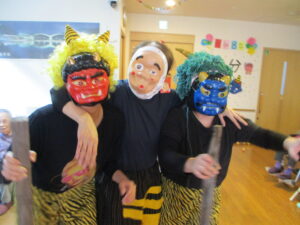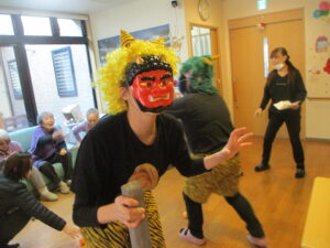鬼に扮した職員が登場すると、最初は驚かれる方もいらっしゃいましたが次第に笑顔が見られ、