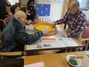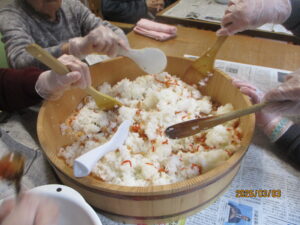 今年も元気よく両ユニット合同でちらし寿司作りを行いました。